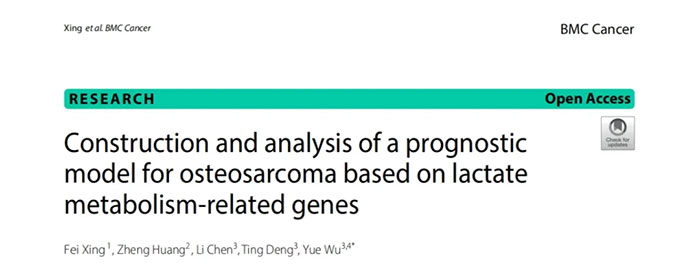 上海蓝十字脑科医院【同济大学附属蓝十字脑科医院(筹)】科研创新工作喜讯不断,捷报频传。医院骨科副主任邢斐医生作为第一作者,参与研究的论文《Construction and analysis of a prognosticmodel for osteosarcoma based on lactatemetabolism-related genes》(基于乳酸代谢相关基因的骨肉瘤预后模型的构建与分析)于2024年3月26日在国际学术期刊《BMC Cancer》上在线发表(Published online:26 March 2024),并被SCI收录(2025年影响因子:3.4)。
