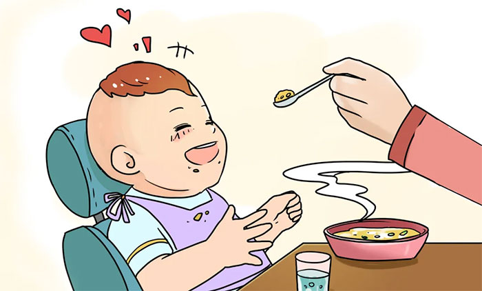 ▲ 给幼儿喂食时要注意防范误吸