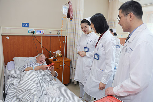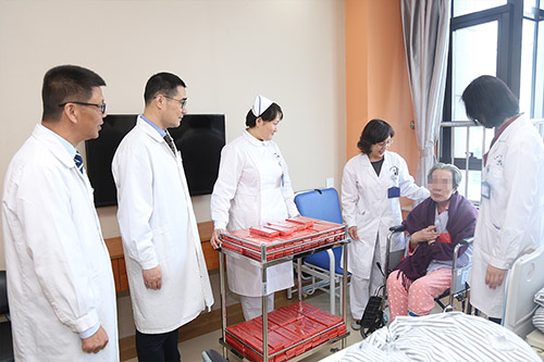 “谢谢关心,我要特别谢谢你们陈婷婷护士长,我们已经来了几个月,陈护士长能力很强,把我们照顾得很好,同时还要谢谢医生、护工,他们都很用心和负责,通过这段时间的治疗和康复,老人身体好了很多。”7B病区住院老人王大爷家人看到来送糕的领导感谢道。
