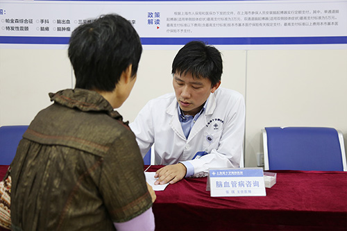 ▲张琪博士为老人讲解急性脑卒中的急救知识