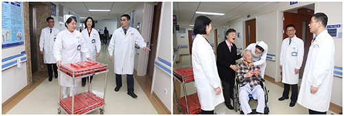 为了让老人,尤其是住院的老人感受到节日的氛围,一大清早,上海蓝十字脑科医院副院长潘耀良、周克祥、郭俊艳等院领导及相关科室负责人,把一块块精心准备的重阳糕送到门急诊与病区65岁以上老人及医院65岁以上的专家、后勤职工手中,并送上节日的问候与祝福。