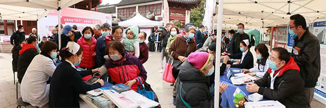“医生,最近我总觉得脑袋里嗡嗡作响,听力也有下降,是怎么回事”、“大夫,我先生癫痫药吃了一年,现在已不发作了,是否可以停药了”……虽然天气较为寒冷,大家关注健康的热情丝毫未减,在短短1个半小时里,有上百位市民群众来到医院摊位前测量血压、询问健康问题,志愿者用心聆听耐心讲解,专业而通俗易懂的话语,赢得了一致好评。