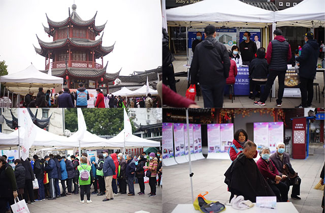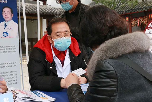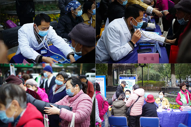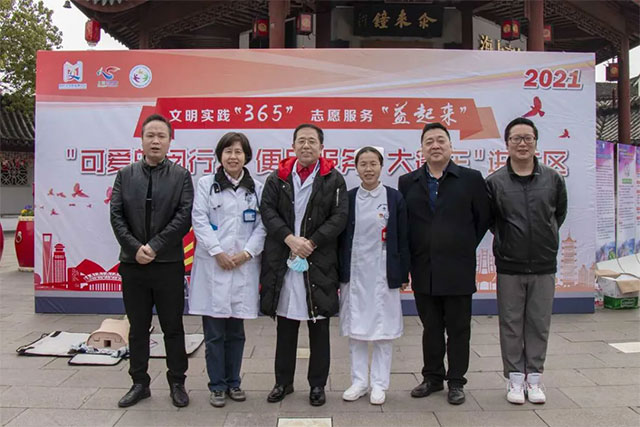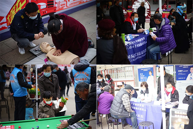 3月5日当天,由闵行区各层级、各领域先锋模范组成的志愿服务组织——“可爱的闵行人”志愿服务队在七宝古镇钟楼广场开展了大型志愿服务公益活动,服务项目涵盖了医疗服务、法律咨询、小家电维修、理发、金融理财安全宣传等民生领域。作为区域内专业的脑病防治专科医院,上海蓝十字脑科医院积极参与,由神经内科专家周君主任和李振并主任以及护士邢云霞组成志愿者服务队,为广大群众提供健康信息服务、测量血压等服务。