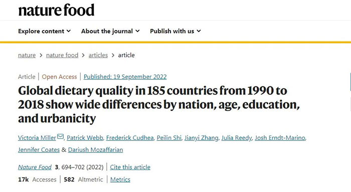研究人员从种族、年龄、教育、城镇化等方面,结合从0分(大量食用糖和加工肉类)到100分(蔬菜、豆类/坚果和全谷物平衡饮食)的饮食质量衡量标准,并根据全球膳食数据库(Global Dietary Database)的1100多项调查数据对185个国家的成人和儿童的饮食模式进行了研究。结果表明,大多数国家的得分都在40.3左右,从1990年至2018年人类饮食质量仅提升了1.5%,且各国之间存在显著差异。大量加工食品的摄入,抵消了健康饮食带来的质量增长。