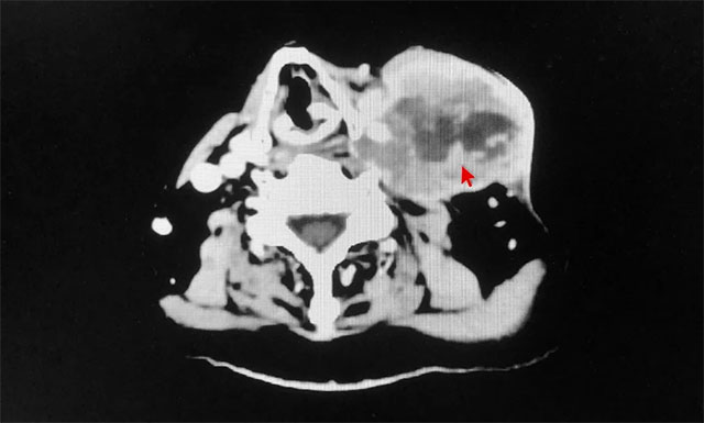 ▲ 患者左侧颈部淋巴结转移,肿瘤体积较大