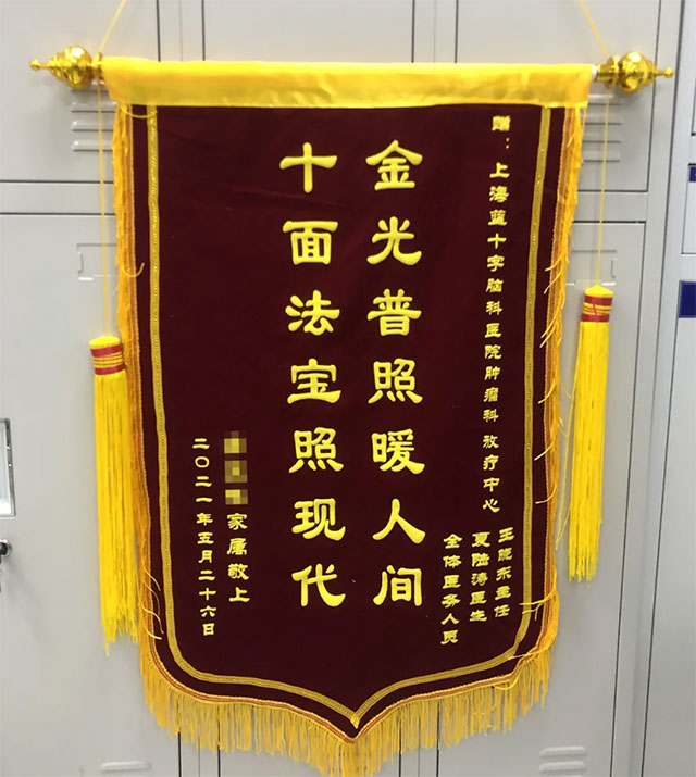 喉癌转移患者放疗后送锦旗致谢
