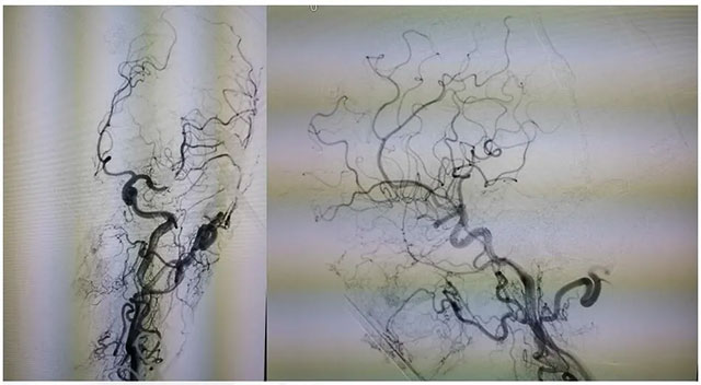 ▲ DSA检查显示,左侧窦区动静脉瘘