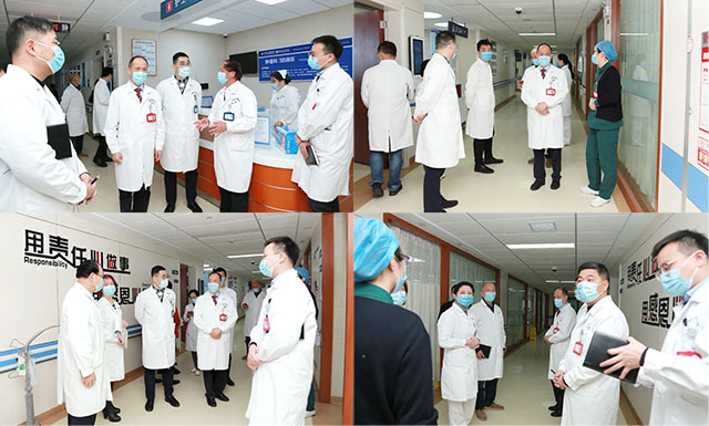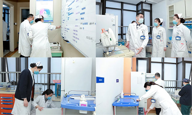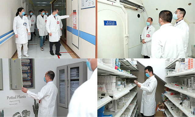 检查组一行重点对各病区治疗室、重症监护病房等关键区域进行了督导检查,并对节假日期间值班安排、急救药品、重要设备、消毒物品备用情况和疫情防控措施等方面进行了深入细致的系统检查。