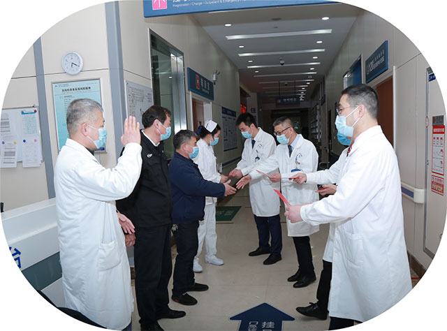 ▲ 项耀钧院长向坚守在除夕夜工作岗位上的医护人员拜年