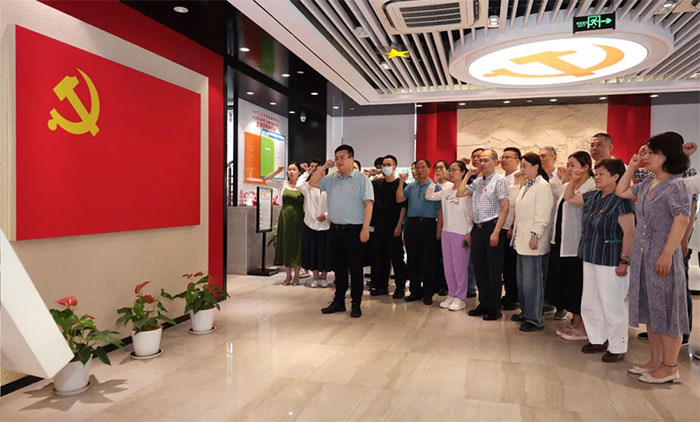 活动伊始,在朱敏书记的领誓下,全体党员面向党旗,庄严举起右拳,重温入党誓词:“我志愿加入中国共产党,拥护党的纲领,遵守党的章程……”铿锵有力的誓言回荡在馆内,表达了对党的无限忠诚、为人民(患者)服务的坚定信念和决心。在庄严肃穆的氛围中,初心誓言让与会人员进一步强化了党性观念,也更明确了肩负的责任与使命。