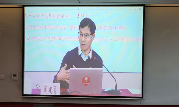 随后,在七宝党群服务中心组织生活馆,与会人员观看了中共上海市委党校党的建设教研部副主任周建勇教授的“学党章、守规矩、讲党性”专题视频党课。周建勇教授紧扣深入学习贯彻党的二十届三中全会精神主线,深刻阐述了党章在中国共产党党内法规体系中的“母法”地位,系统回顾了中国共产党纪律建设的发展历程,并强调了党章在管党治党中发挥的根本性作用,引导广大党员干部以党章为准则,严格遵守党的纪律和规矩,将锤炼党性与提升思想觉悟作为终身课题,在遵规守纪中推动改革创新与干事创业。