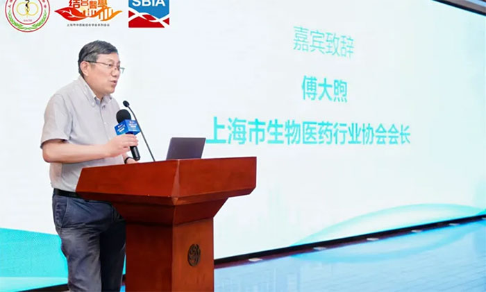 ▲ 上海市生物医药行业协会会长傅大煦研究员为论坛开幕发表致辞