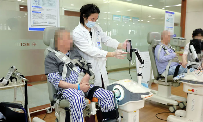 康复医学科以“急性脑卒中早期康复治疗,颅脑、脊髓神经损伤中西医康复及认知功能障碍中西医康复”为主攻方向,经过多年建设发展,形成了现代康复评定、早期吞咽与认知功能训练、高压氧神经康复治疗、经颅磁刺激、等速肌力训练、放散状体外冲击波治疗及后遗症期运动、感觉训练等一批特色核心技术。在中国康复医学会老年康复专业委员会第六届委员会委员、科主任张敏主任医师及原中国康复医学会康复治疗专业委员会第四届委员会委员、科副主任沈志祥博士的共同带领下,科室近年不断推进技术创新,开展基于脑机接口运动想象范式的脑卒中患者运动功能机制及康复方案探索,拓展医疗康复新路径。